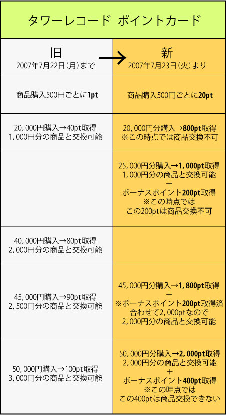 タワーレコードのポイントカードが、7月24日(火)から新しいシステムに変更されるんだそうだ。