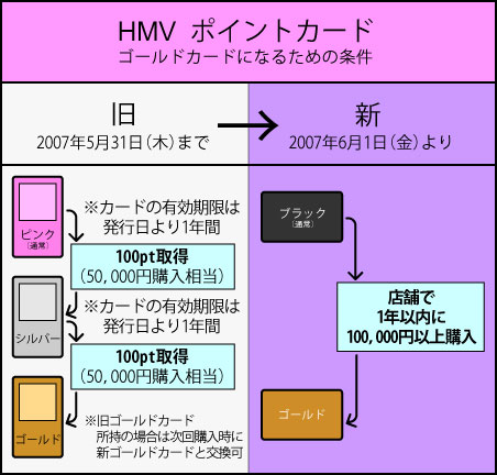▼過去記事:HMVのポイントカード、ゴールドへのノルマがアップ (同)
